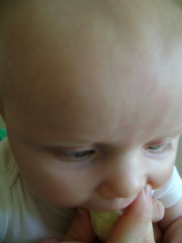 Becca started showing interest in what we were eating. One morning when I had her on my lap during breakfast and was eating a banana, she really insisted on trying it. She quite liked it!